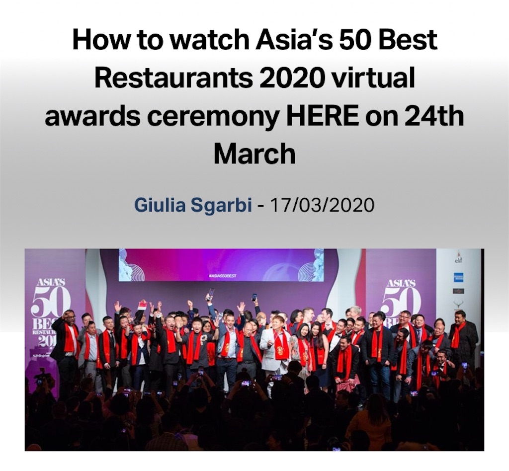Asia's 50 Best Restaurants 2020 - Virtual Event Live On 24th March 4PM SING/HKG